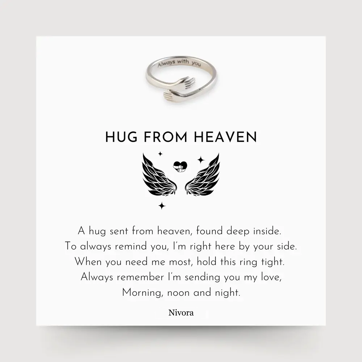 A hug sent from heaven, found deep inside. To always remind you, I'm right here by your side. When you need me most, hold this ring tight. Always remember, I'm sending you my love, morning, noon and night.